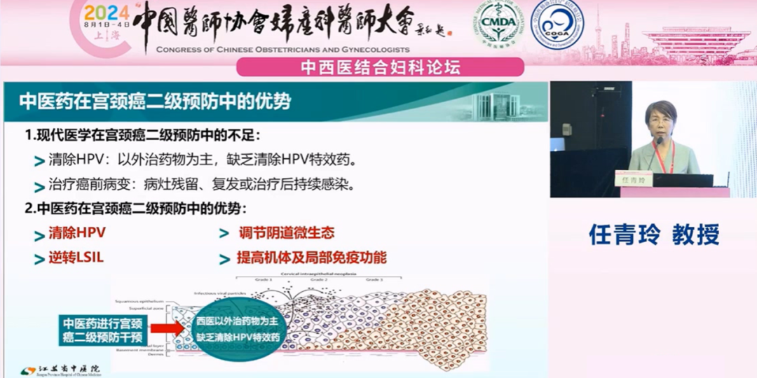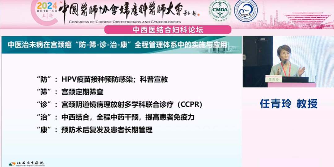 江蘇省中醫(yī)院任青玲教授就《中西醫(yī)結(jié)合宮頸癌防治一體化平臺建設》為題進行報告: