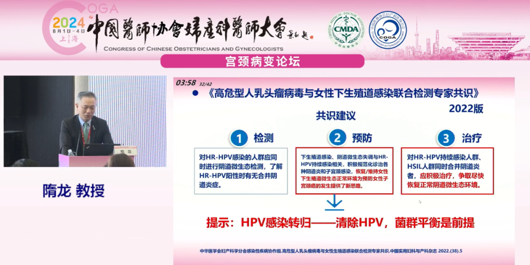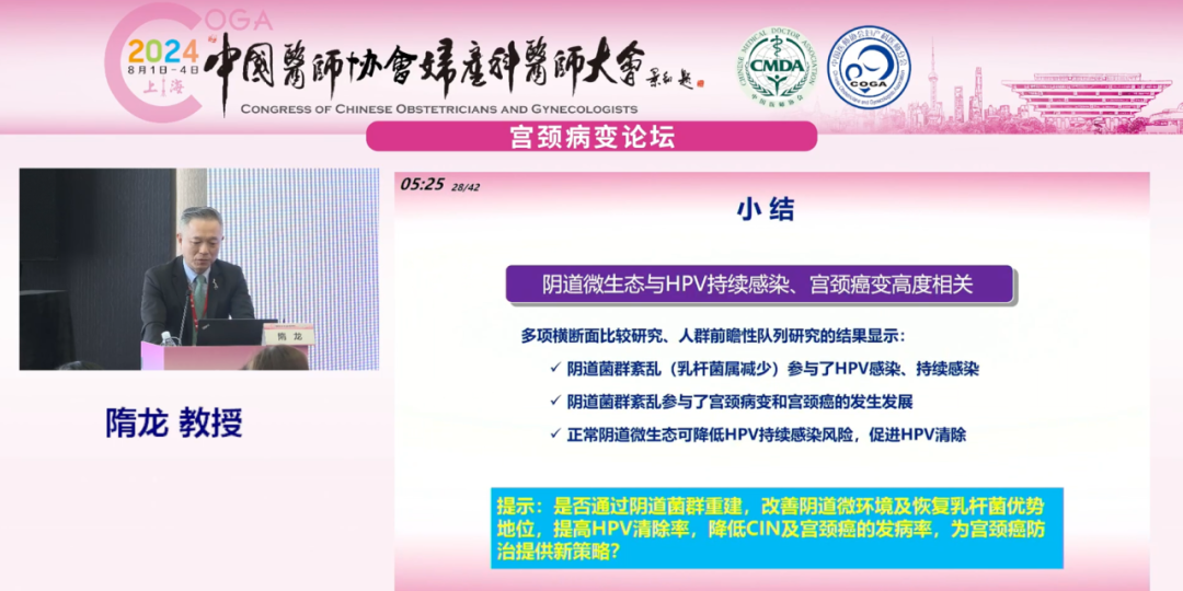 復(fù)旦大學(xué)附屬婦產(chǎn)科醫(yī)院隋龍教授就《陰道微生態(tài)調(diào)節(jié)與HPV轉(zhuǎn)歸》為題進(jìn)行報(bào)告: