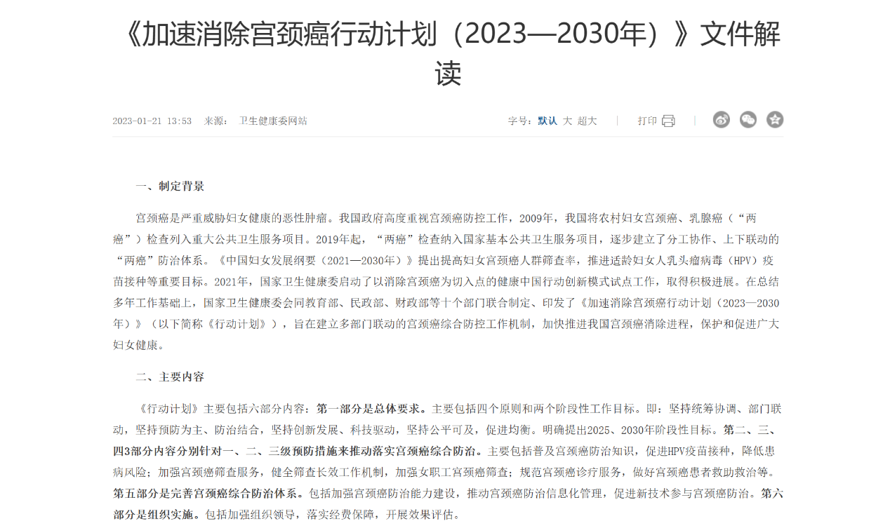 (我國發(fā)布《加速消除宮頸癌行動計(jì)劃》)