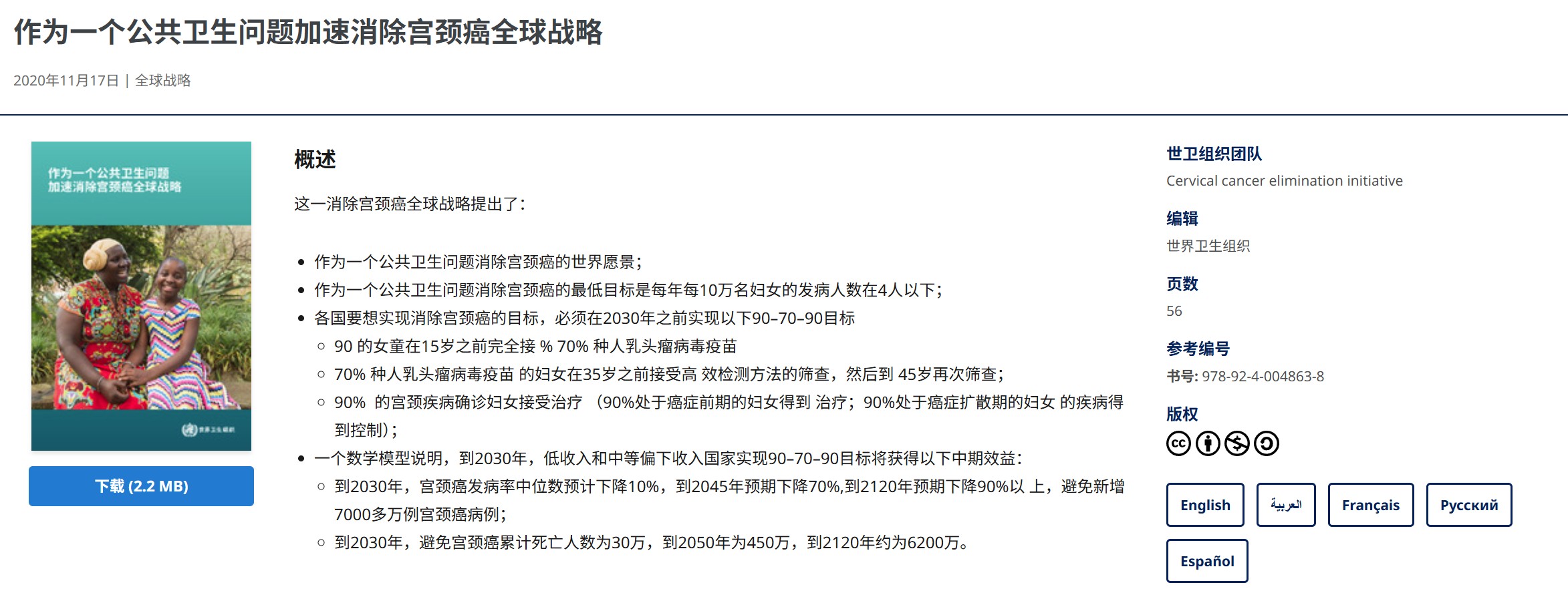(WHO作為一個(gè)公共衛(wèi)生問題加速消除宮頸癌全球戰(zhàn)略)