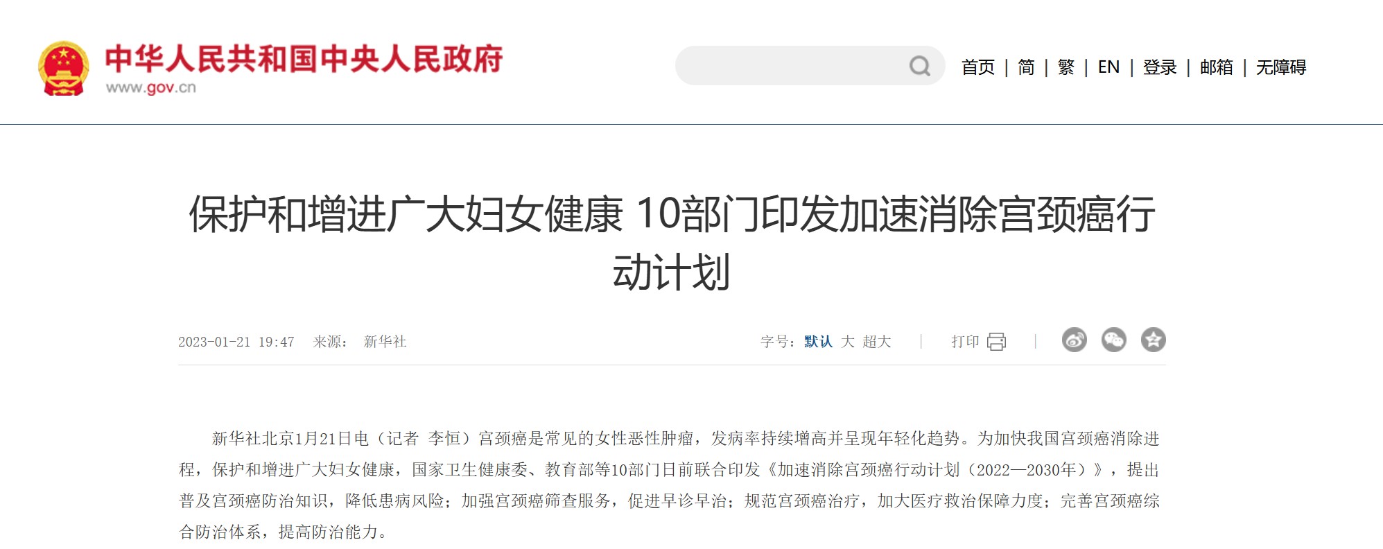 (《加速消除宮頸癌行動計劃(2023—2030年)》節(jié)選)