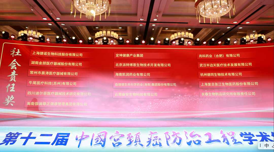 本次大會(huì)現(xiàn)場(chǎng)進(jìn)行了“生命之托·華夏同行,最美的宮頸守護(hù)者“頒獎(jiǎng)盛典,派特生物集團(tuán)榮獲“社會(huì)責(zé)任獎(jiǎng)”,以表彰其在宮頸癌防治工作中的表現(xiàn)。