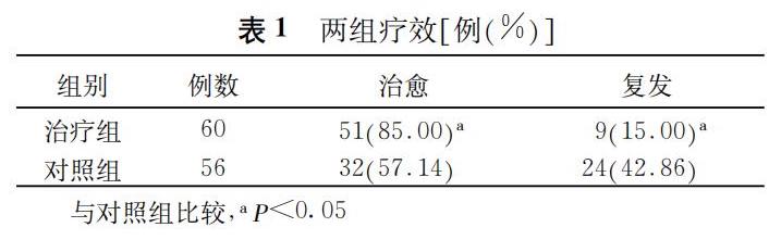治療組治愈率85%?明顯高于對照組的54?14%( P<0?05)?并且不良反應(yīng)輕微。