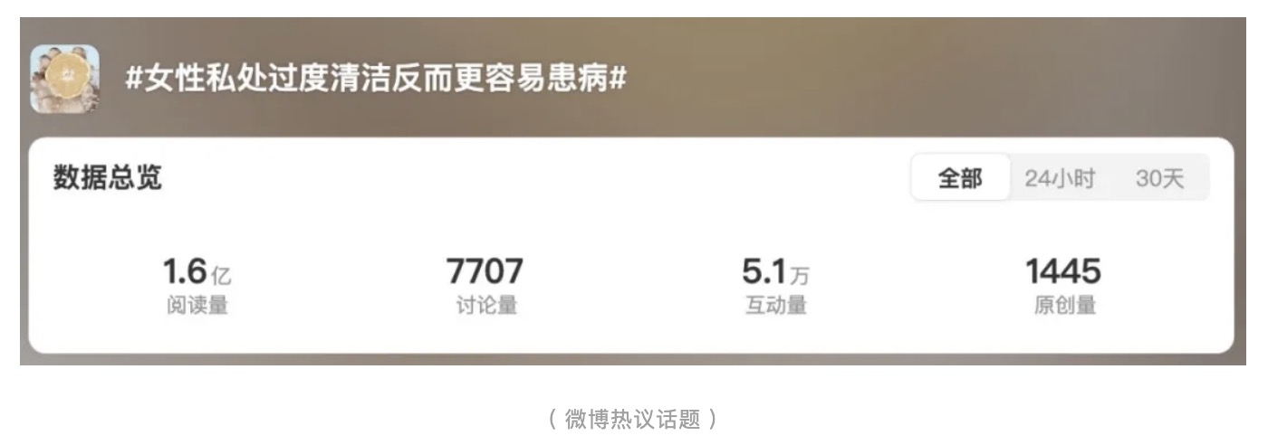 最近,微博上的一條熱搜引起了大家的關(guān)注——“女性私處過(guò)度清潔反而更容易患病?”。截止截稿,該話題已被1.6億人瀏覽、討論。