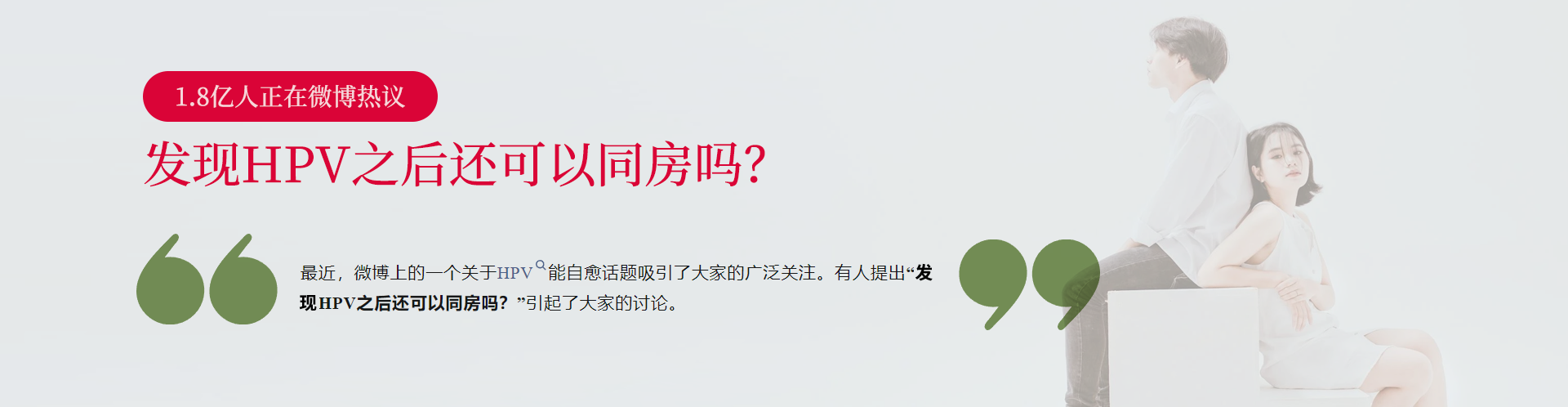 最近,微博上的一個(gè)關(guān)于HPV能自愈話題吸引了大家的廣泛關(guān)注。有人提出“HPV之后還可以同房嗎?”引起了大家的討論。